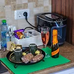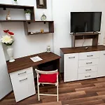 Guests will enjoy a flat-screen TV with satellite channels and benefit from comforts like an ironing set and an air conditioner. Along with a sofa set and a writing table, the interior features a fireplace. Beds fitted with anti-allergic soft or hard pillows are at guests' disposal. A bathroom comprises a separate toilet and a shower. Additionally, you'll find a hairdryer, towels, and slippers.